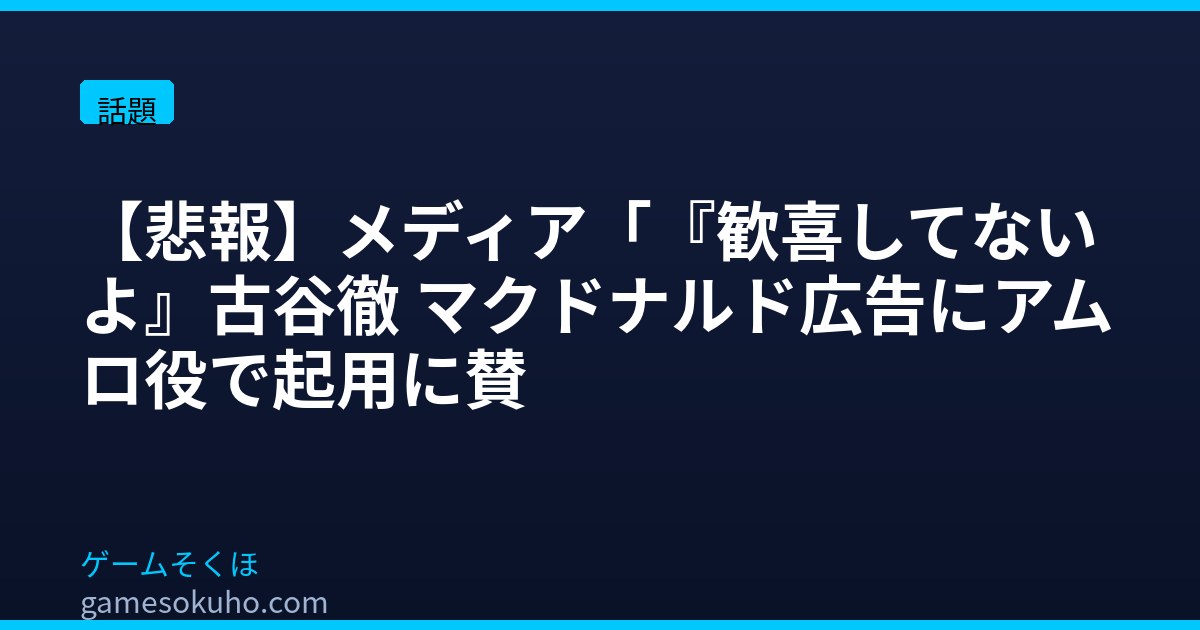 📌 【悲報】メディア「『歓喜してないよ』古谷徹 マクドナルド広告にアムロ役で起用に賛否…」(全86レスより厳選)