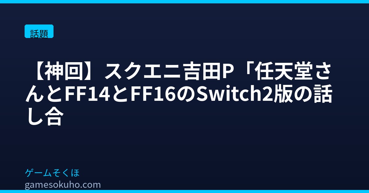 📌 スクエニ吉田P「任天堂さんとFF14とFF16のSwitch2版の話し合いは前向きに進んでいる」(全150レスより厳選)